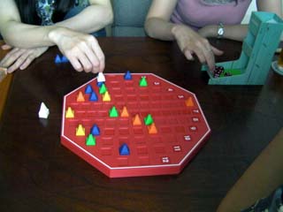 4人でプレイ。すごい勢いで盤上が埋まっていって身動きがとれなくなる